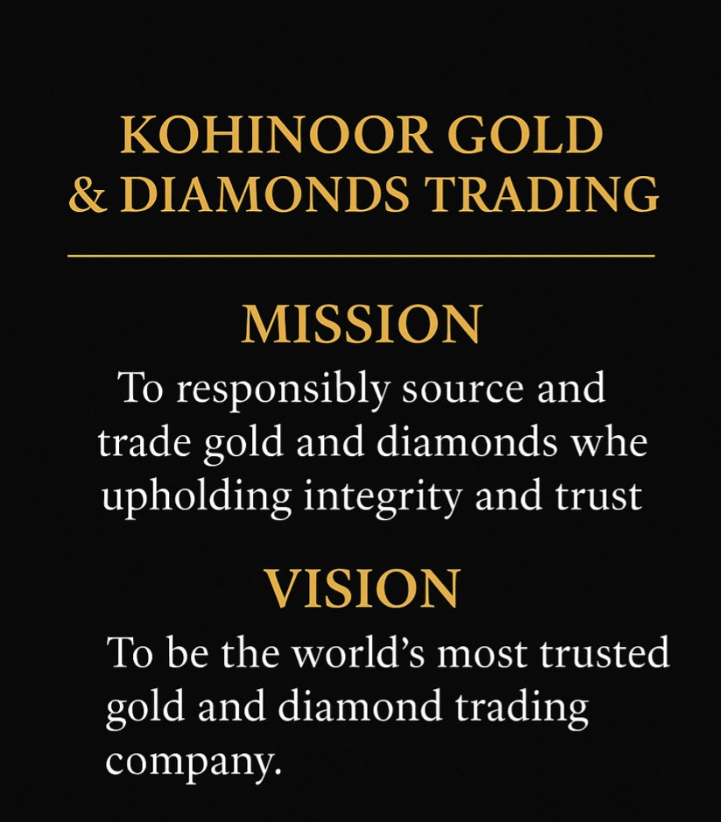 Kohinoor Gold & Diamond Trading FZE is a vertically integrated precious metals company operating across Africa & headquartered in Dubai, the world’s leading gold trading hub. We manage the full value chain from exploration in Uganda to mining & trading operations in Ivory Coast—built on decades of expertise in geology, extraction, refining, & global trade compliance. Our Dubai base enables seamless connection between African gold production & international markets through efficient, transparent, & globally compliant supply chains.